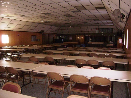 The hall is equipped with heat, air conditioning, and overhead ceiling fans.